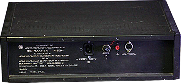 Усилитель низкой частоты, одноканальный, с двумя входами разной чувствительности, каждый со своим диапазоном и регулировкой. Со встроенным эквалайзером и выходом "петли" на запись или внешний блок эффектов. Производился на радиозаводе Форманта г.Качканар Свердловской Области.
